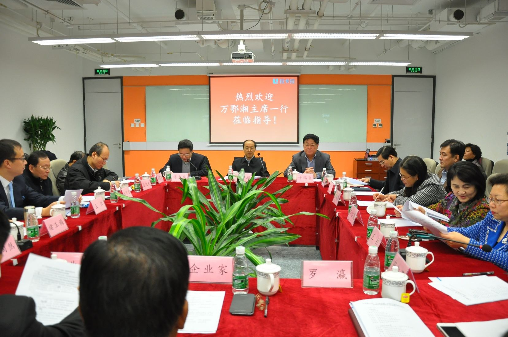 1月7日,民革中央主席万鄂湘率民革中央调研组就行政审批制度改革在京调研,并与民革党员中的部分企业家座谈。民革中央副主席修福金,民革中央副主席、民革市委会主委傅惠民陪同调研。民革市委专职副主委于雪鹰、褚玉梅,秘书长蒋耘晨参加调研活动。 调研组一行考察了位于中关村海淀园区的纽曼腾飞科技有限公司和拉卡拉支付有限公司。在听取了民革党员、 纽曼腾飞科技有限公司总裁程静和拉卡拉支付有限公司董事长孙陶然的汇报后,万鄂湘详细询问了两家公司在科技创新、市场应用、企业管理等方面的情况。重点询问了企业运行过程中特别是行政审批环节面临的问题,并亲身体验了3D投影机、云办公电话电脑一体机、拉卡拉支付设备等科技产品等。 调研期间,调研组一行还与党员中的企业家代表进行了座谈,重点听取了他们对行政审批制度改革的分析与建议。大家踊跃发言,他们表示,近年来行政审批已有很大改善,但部分审批仍存在标准和程序不够公开问题。例如审批周期过长、程序复杂、行政成本高等,这些都给政府和企业增加了负担。企业家代表还就行政审批制度改革提出了意见和建议。 万鄂湘听了与会者的发言后表示,加快转变政府职能,行政审批制度改革是中共十八届三中全会部署的全面深化改革的重要内容之一。民革中央此次调研就是围绕行政审批制度改革,进一步了解我国现行行政审批制度下的政府、市场和企业的关系及我国行政审批制度存在的问题,并对这一制度的改革提出建议。与会代表特别是民革企业家代表们的发言给调研组提供了鲜活的素材,希望企业家们能继续依法守法经营,积极创新进取,在带领企业自身发展的同时,还要从国家发展、社会进步层面积极发挥作用,并为民革中央进一步做好参政议政工作提供好素材、