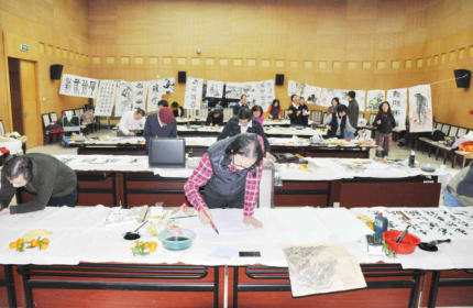 1月20日, 北京中山书画社举办迎新春书画笔会, 20多位书画家现场挥毫泼墨, 创作了书法和绘画作品60余幅, 为民革市委带来了浓浓的节日气息。民革市委常务副主委于雪鹰, 专职副主委褚玉梅以及秘书长蒋耘晨到场看望了艺术家。 摄/文 王雪飞