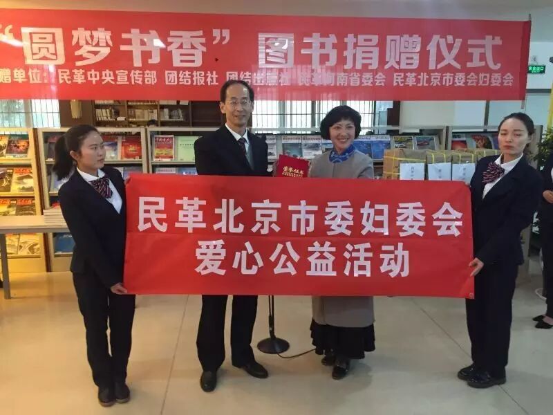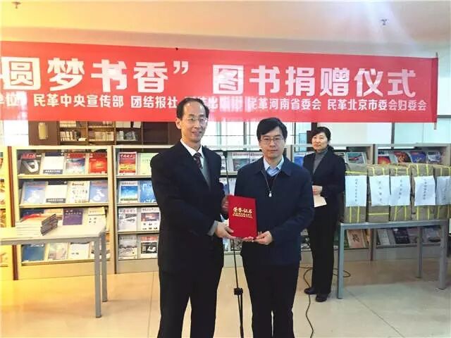 捐赠仪式现场 短短一周时间,5家单位筹集7000多册、价值40余万元图书,捐赠给郑州城市职业学院。这对远在新密校园的师生来说,已经算是个大新闻了。但更大的新闻还在后面,捐赠仪式上,民革中央副主席修福金宣布,“这只是个开始,经过协调,很快会有第二批3万册图书的捐赠。”顿时,现场学生中发出一片“哇”“哦”的惊呼声,以及紧随其后的热烈掌声。 民革中央宣传部向郑州城市职业学院捐赠图书 民革北京市委会妇委会向郑州城市职业学院捐赠图书 3月23日,民革中央宣传部、团结报社、团结出版社、民革河南省委会、民革北京市委会妇委会联合举办“圆梦书香”图书捐赠仪式。 丰富的捐赠让学生们欢呼雀跃,捐赠背后的“圆梦”故事,更让人感动。 郑州城市职业学院属于高等职业院校,学院理事会理事长是民革党员孟凡镰。近年来,民革中央多位领导到学校考察调研,并对学校办学给予指导,对相关困难帮助协调解决。2015年,修福金在调研中了解到,学院发展迅速,学生就业率连年在河南省位居前列,但学院图书馆藏书数量明显不足,“这可不行,我来想办法,一定要让孩子们多读书,读好书,从网吧走到图书馆,从游戏中走到书桌前。” 这一提议得到了五家单位的积极响应。民革中央宣传部作为民革全党思想宣传工作的主管部门,精心挑选适合学生阅读的书籍。团结报社发动全社员工积极捐赠,最多的个人捐赠超过200本,“多媒体电子阅报屏”同步进驻。团结出版社在人文、历史、社科、教辅颇具优势,这次不是“去库存”,而是组织专门人员从新书、样书中认真挑选。民革河南省委会组织机关、党员积极捐赠,直到仪式当天上午,还有新的捐赠图书送往学院。民革北京市委会妇委会在前期捐赠基础上,又协调党员资源,组织了后续3万册的图书捐赠。 |