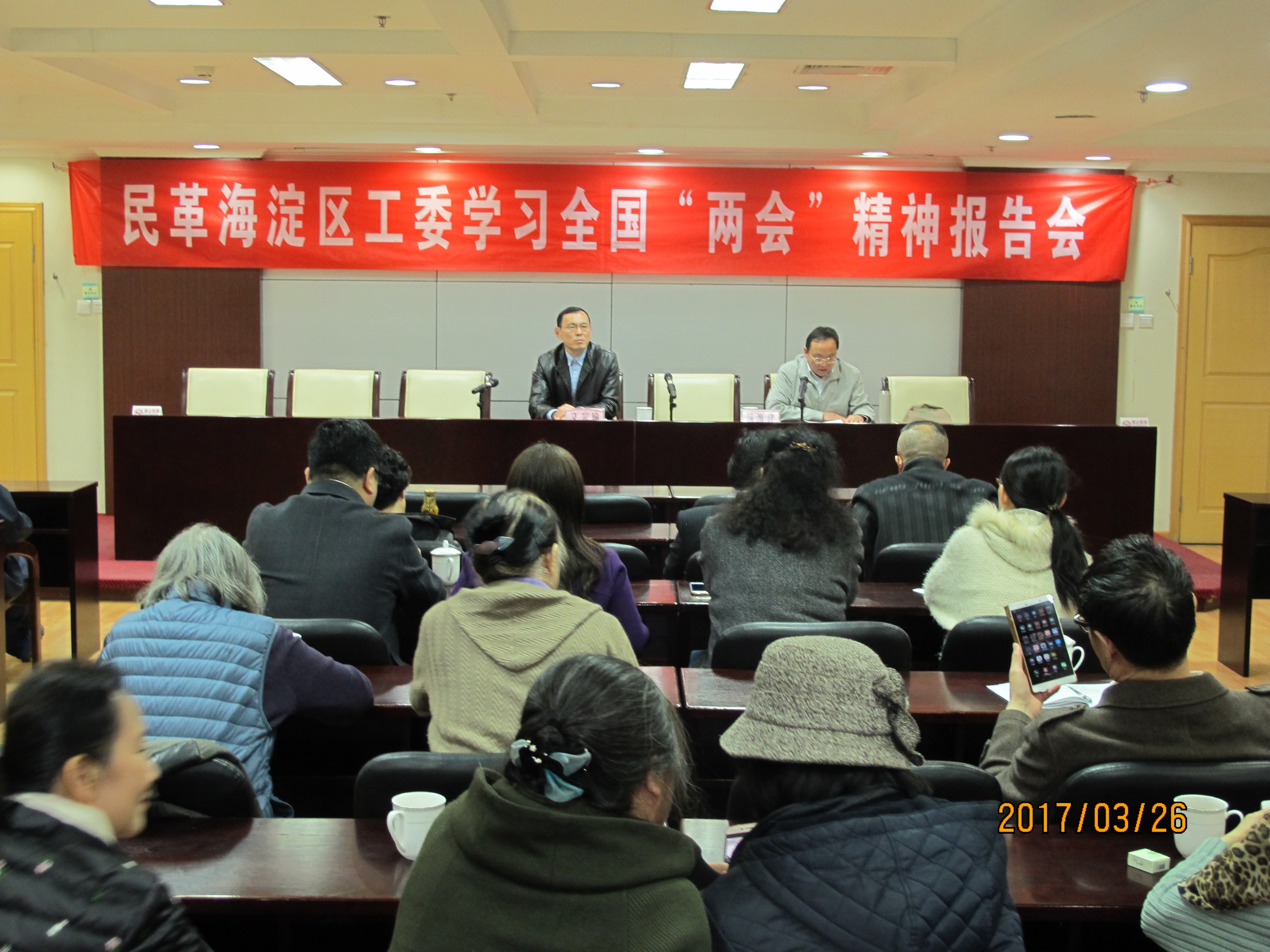 3月26日,民革海淀区工委举行学习全国“两会”精神报告会,专题传达学习十二届全国人大五次会议和全国政协十二届五次会议精神。区工委委员、各支部负责人、党员共60多人参加学习。报告会由区工委副主委文宗瑜主持。 全国政协委员、民革北京市委副主委、民革海淀区工委主委汤维建在会上传达了“两会”精神。他指出,民革党员中的全国人大代表、政协委员在两会期间共谋改革良策,共商发展大计。他们不负广大人民群众和全体民革党员的托付和期望,在经济建设、生态文明建设,加强司法改革等方面,积极建言献策,展现了民革党员风采,为共圆中国梦贡献了力量。 汤维建强调,刚刚闭幕的全国“两会”上,习近平总书记与人大代表、政协委员共商国是,从党和国家大局发展高度,提出了一系列新论断、新论述、新部署。他希望各支部要深入学习贯彻“两会”精神,坚决维护以习近平同志为核心的中共中央权威,围绕统筹推进“五位一体”总体布局和协调推进“四个全面”战略布局,增强参政议政工作实效,务实开展脱贫攻坚民主监督工作,为促进祖国和平统一贡献力量。 |