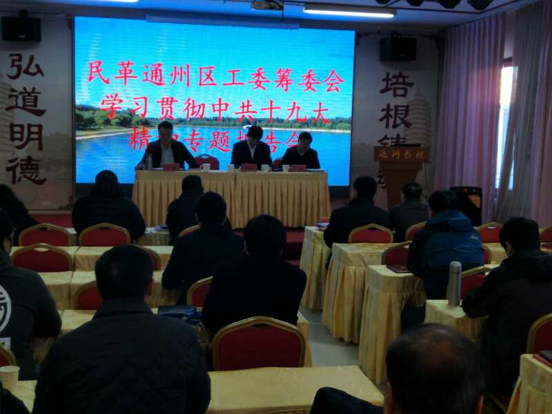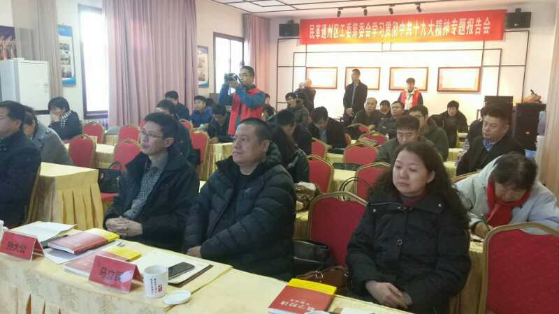 民革通州区工委筹委会于11月26日在通州运河书院召开了“学习贯彻中共十九大精神专题报告会”。会议由区工委筹委会副主委刘船主持,民革市委秘书长蒋耘晨、中共通州区委统战部工作事务管理中心主任王雪丽,通州区工委筹委会委员、民革党员等40余人参加会议。 会上,通州区工委筹委会主委李钟首先总结了区工委筹委会近一年的工作情况;传达了民革市委关于学习贯彻中共十九大精神、建立民革党员之家等文件精神;交流了学习中共十九大精神的心得体会。他说:筹委会在近一年的工作中,做了大量工作,特别是在组织建设方面取得了成果,截至目前,党员人数已达到91人,在北京市各区中人数增长最快。成立了6个专委会,代行了支部的职责,开展了诸多有意义的活动,提交了多份提案,表现出了参政党的基本素质和责任感。李钟表示,我们即将成立五个支部,为明年成立工委做积极准备工作,让党员同志们更有归属感。 对于学习贯彻中共十九大精神,李钟谈到:十九大报告通俗易懂、内容博大精深。我们民革党员,要从内心深处接受中国共产党的领导,牢固树立“四个意识”。学习贯彻十九大精神,是当前首要任务,各个专委会和即将成立的支部要以多种形式学习,结合民革优良传统,边学习边思考,落实到参政议政工作上来,落实到祖统工作上来,落实到京津冀、副中心建设上来,与各区民革组织联动起来,开创出更好的工作局面。 蒋耘晨首先将民革市委在王红主委带领下组织学习宣传贯彻中共十九大精神动作快、覆盖广、效果好、重实效的情况进行了报告。并从组织建设、思想建设、参政履职、社会服务四个方面对民革通州区工委筹委会的工作进行了系统回顾,对筹委会工作成果表示充分肯定,对今后的工作提出了三点期望:一是将学思践悟十九大精神与参政履职结合起来;二是提高政治站位,增强“四个意识”,为城市副中心建设这一国家战略献计出力;三是扎实开展工作,继续努力使未来的通州区工委各项工作迈上新台阶。蒋耘晨要求广大党员再接再厉、牢记使命、履职尽责,建设好符合新时代要求的中国特色社会主义参政党的地方组织。 中央社会主义学院副教授杜玉芳在会上做了题为《新时代 新使命 新思想 新征程》的报告。她从中共一大召开讲起,细致梳理了中共历次党代会召开的历史背景、会议内容和重要意义,内容生动、客观,从新的角度为我们展现了中共从萌芽到壮大的波澜壮阔的奋斗史。特别是讲到十一届三中全会后,中共带领全国人民走上了改革开放、国富民强的道路,使我们切实认识到中国共产党是历史的必然选择。杜教授还从十九大报告的新时代、新使命、新思想、新征程四个方面的逻辑关系为我们做了深入浅出的讲解,引领我们更深入地领会报告的精神实质,受益匪浅。 最后,蒋耘晨宣布了民革市委对通州区工委筹备委员会成立一到五支部的批复。 |