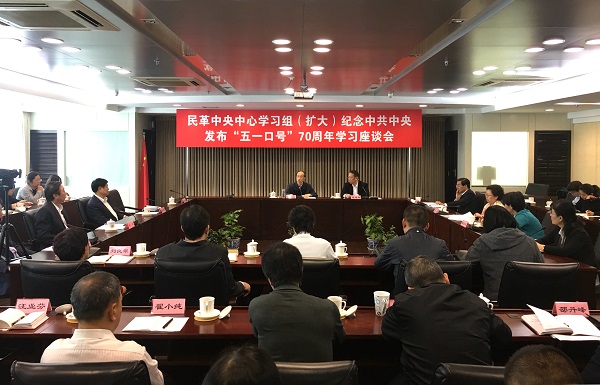 民革中央常务副主席郑建邦主持会议并讲话 座谈会采用读书会的形式,中心学习组成员就学习中共中央发布“五一口号”相关文献的心得体会进行了分享交流。 万鄂湘说,中共中央公开发布“五一口号”,是我国政党制度史上的重大事件,为新型政党制度的建立奠定了坚实的政治基础。“五一口号”是在70年前非常复杂的历史环境和时代背景下,中共中央对国内各行各界发出的政治宣言,充分表明了中国共产党尊重历史、顺应民意,诚挚与各方协商建国的进步立场。通过“五一口号”,各民主党派进一步体会到中国共产党的宽广胸襟和宏伟抱负,迅速地聚集在中国共产党周围,心悦诚服地接受中国共产党领导,加入到协商建国的革命洪流之中,加入到中国共产党领导的多党合作和政治协商制度创建进程中。 万鄂湘指出,纪念“五一口号”,不仅在于加强对其历史地位和进步作用的理解,更重要的是要深化对这一历史事件赋予新时代的现实意义的认识。回顾“五一口号”产生的背景和历程,我们更加深刻地认识到,接受中国共产党领导,在中国共产党领导下致力于中华民族伟大复兴事业,是民革的初心,也是民革的立党之本,更是民革的光荣传统。中国共产党领导的多党合作和政治协商制度作为一项基本政治制度,是中国共产党、中国人民和各民主党派、无党派人士的伟大政治创造,有独特的政治优势和制度优势。中共中央发布“五一口号”,直接催生了我国新型政党制度,并推动其不断发展、日臻完善。进入新时代,多党合作舞台更为广阔。习近平总书记系列重要讲话深刻阐明了中国共产党领导的多党合作和政治协商制度的性质地位、鲜明特点、独特优势和前进方向,对包括民革在内的各民主党派提出了新的要求,指明了新的方向,是多党合作事业发展的根本遵循。 万鄂湘对民革全党提出了希望,强调要把纪念“五一口号”与学习习近平总书记系列重要讲话精神,特别是有关“新型政党制度”的重要论述结合起来,准确把握建设中国特色社会主义参政党的基本要求,不忘初心,砥砺前行,结合自身工作实际,认真总结经验,拿出真知灼见,抓好各项工作,不辜负伟大的新时代。
