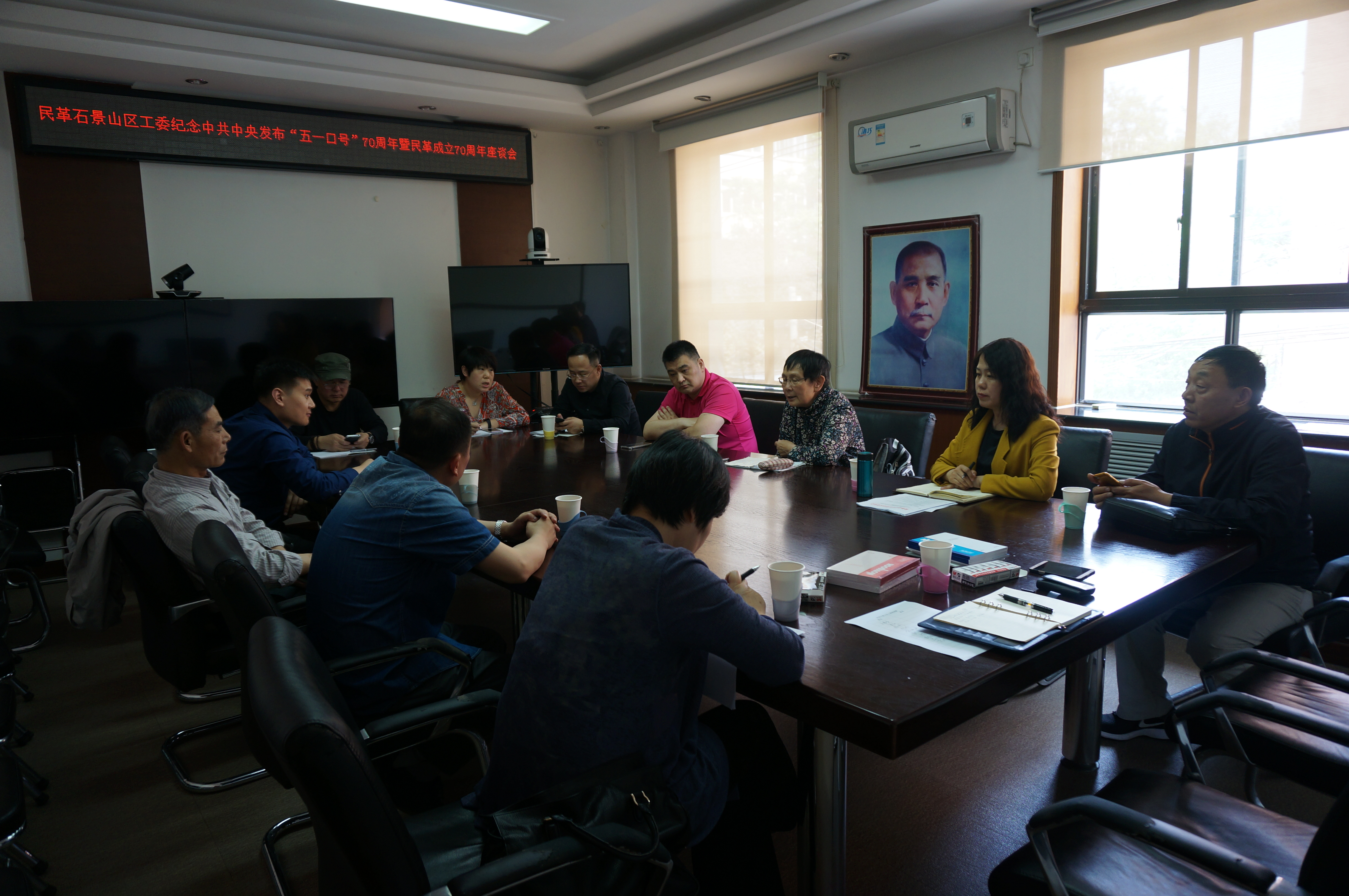 5月4日,“不忘合作初心,继续携手前进”——民革石景山区工委召开纪念中共中央发布“五一口号”70周年暨民革成立70周年座谈会。民革石景山区工委主委李凤芹主持会议,副主委杨学兵、李智勇以及区工委委员参加了座谈。 会上,大家畅谈“五一口号”的重要历史意义、重大现实意义和深远的指导意义,结合自己与民革的渊源逐一阐述了对中国共产党领导的多党合作和政治协商制度的认识。大家一致表示将一如既往坚定拥护中国共产党的领导,在思想行动等方面高标准要求自己,在新时代有新作为,作出新贡献。 最后,李凤芹要求各支部组织召开座谈,深刻学习“五一口号”的内涵和精髓,组织广大党员学习多党合作历史,要以习近平新时代中国特色社会主义思想为指导,高举中国特色社会主义伟大旗帜,不忘合作初心、继续携手前进,为石景山区早日建成国家级绿色转型发展示范区,为决胜全面建成小康社会、开启全面建设中国特色社会主义现代化国家新征程作出新的更大贡献。 |
