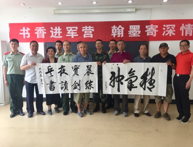 “军魄永铸”、“不忘初心” 、“铁血男儿”力透纸背,热情讴歌了官兵们保卫平安的忠诚本色 。这些寓意深远、主题鲜明、内涵丰富的励志墨宝,凝结了民革书画家们对官兵的心意。艺术家们将现场创作的多幅书画作品赠送给官兵,以此激励大家坚守岗位,更好地维护社会稳定,保障人民群众安居乐业。 此次笔会为民革和武警部队提供了学习和交流的机会,拓展了相互交流的平台,激发了创作热情。大家共同庆祝中国共产党建党97周年,通过书画作品展现祖国日新月异的变化,尽情抒发了爱党爱国之情。 |