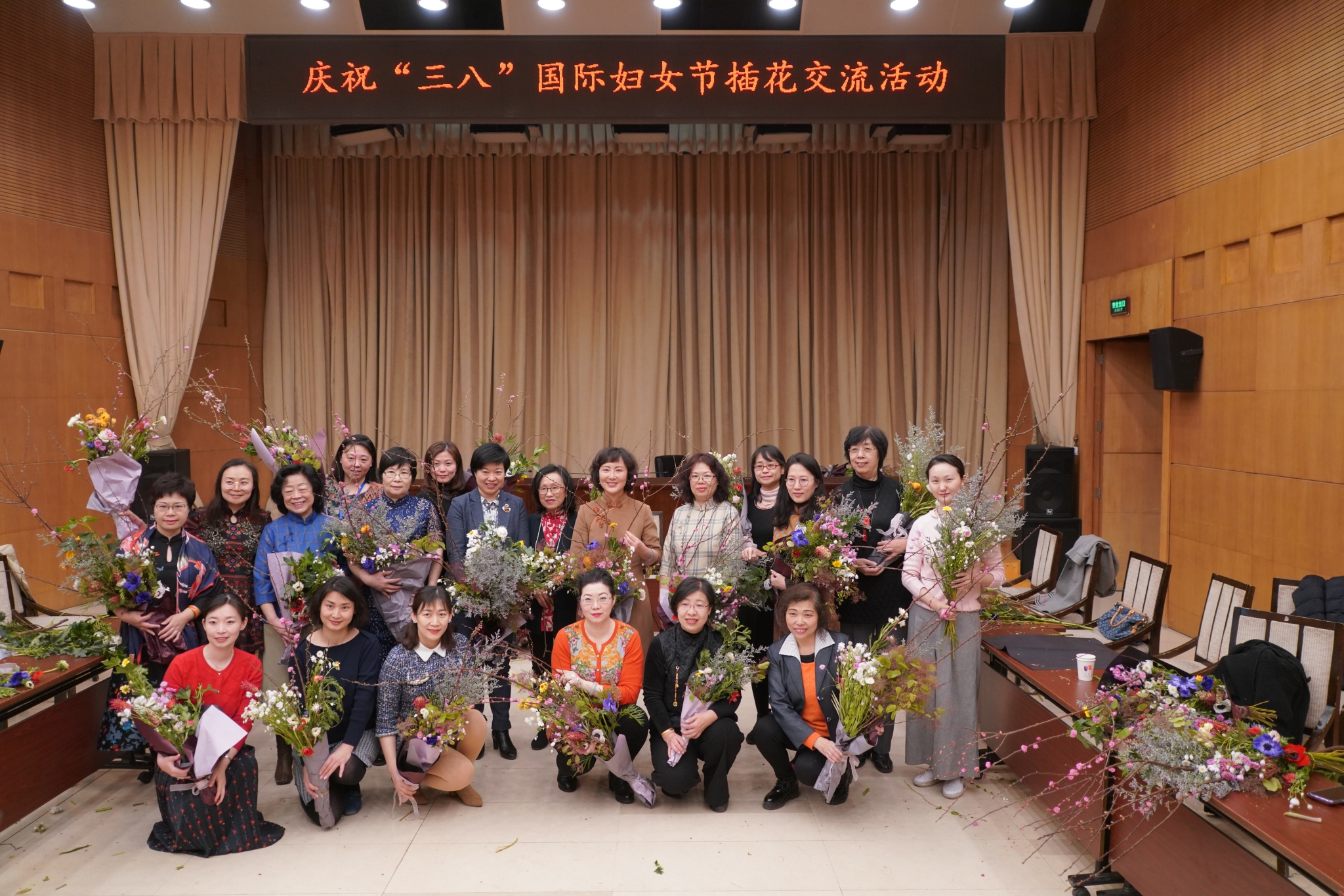 随后,参加活动人员在林爱卿教授的指导下,利用现场的10余种花材制作了手把花,大家在花丛中穿梭,认真制作、热烈交流、相互品鉴,不到一个小时,一束束精美的手把花便在她们的手中诞生了。大家手捧着自己制作的手把花,拍照留念,充满了成就感和幸福感,并深刻体会到中国传统插花艺术的无穷魅力。