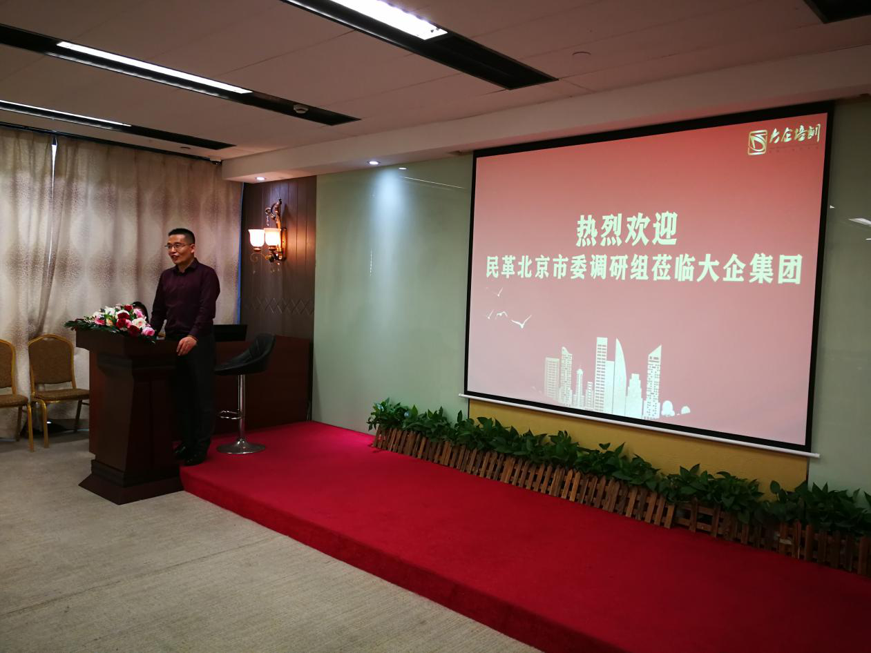 参会的同时,民革北京市委课题组还考察了“大企集团上海分公司”,公司负责人房海雷先生从公司具体情况、民营企业所处环境、如何协助完善课题等几方面,进行了介绍:大企集团成立20年,以培训产业为主,合作企业近万家,其中中小企业占多数,因此对完善“优化营商环境”课题,能够获得第一手资料,并提供强有力的数据及内容支撑。课题组成员、民革中央十三届经济委员会委员文海炜同志随后就优化营商环境中,“如何激活中小企业活力”方面进行了汇报,着重阐述了企业融资、政府债务违约、涉企收费、人才引进培养等方面的内容。褚玉梅同志指出,“优化营商环境”是民革北京市委今年的重要调研课题,此前课题组已前往多个机构部门进行调研,目前我市营商环境总体取得了较大改善,但仍存在一些不足。在建设“四个中心”及大力疏解非首都功能,加快构建“高精尖”产业结构背景下,需要良好的营商环境作为支撑。希望通过本次调研,借助大企集团的资源优势,进一步完善相关课题,形成成果和意见建议,为政府决策提供参考。