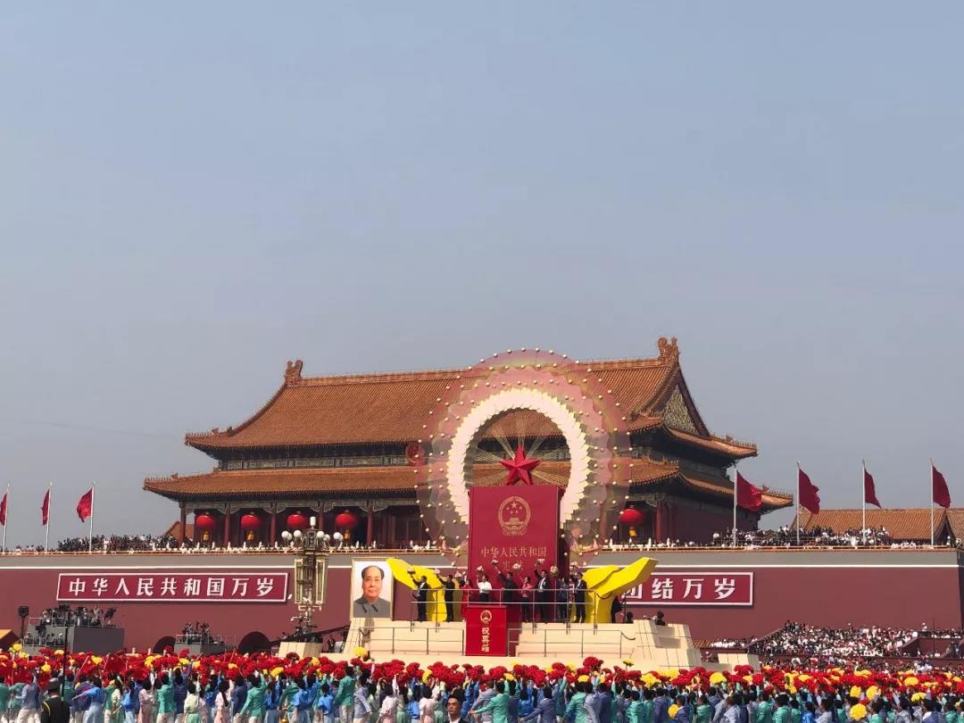 今天上午,有幸在天安门广场见证了庆祝中华人民共和国成立70周年大会的伟大历史时刻,感觉非常震撼! 亲身见证了史上最大规模的阅兵,1.5万人参阅、各型飞机160余架、装备580台套,全部是中国制造,其中40%都是第一次亮相;见证了人民军队全面改革重组后的首次集体亮相,也是军队整体实力的一次大展示、强军兴军成果的一次大汇报;见证了中国特色社会主义进入新时代新科技新思想的磅礴伟力和全国各族各界、全体中华儿女思想空前的高度统一和高度共识。在现场,我看到了中国的历史文化底蕴与科技创新未来、看到了中华民族几代人的荣光与百年梦想、看到了各族各界群众的满满自信与民族自豪。我相信,有全体中华儿女的戮力同心,中华民族伟大复兴的中国梦一定会实现!