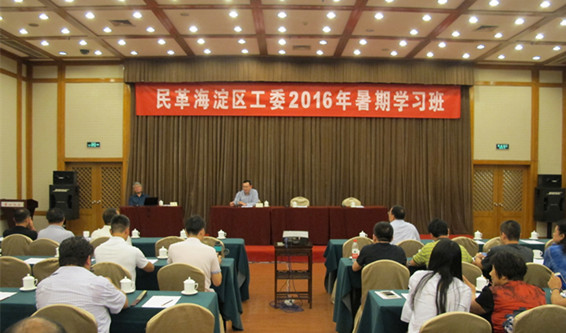 8月27日、28日,海淀区工委举办支部委员、后备干部暑期学习班。民革市委副主委、区工委主委汤维建,区工委副主委文宗瑜、程静参加学习班。 学习班上,中央社会主义学院原副院长、全国政协“人民政协讲坛”特聘教授张峰作了《统一战线学习贯彻习近平总书记“七一”讲话精神》的辅导报告。报告对习近平总书记“七一”讲话精神和重要指导意义进行了解读。海淀区发展和改革委员会副主任钟福林作了《海淀区“十三五”规划纲要》的报告,从规划纲要的结构、目标和任务三个方面进行了详细的解读,并介绍了区“十三五”重点专项规划的编制情况。 汤维建在总结讲话时说,习近平总书记的重要讲话站在新的历史起点上,对做好新形势下统战工作做出了全面部署,既有理论上的重大发展,也有政策上的重大突破。我们要学习贯彻“七一”讲话精神,把握新机遇,珍惜好时光,坚定不移地走中国特色政治发展道路。汤维建就做好今后工作提出了要求,首先要建设学习型的民革干部队伍,加强学习,不落人后,注重改善知识结构,更新知识,不断提高品行修养,在民革大集体中互帮互学,共同提高。二是作一个清醒的海淀人,围绕中心,服务大局,了解区情,关注教育、医疗、交通、环保等热点领域,围绕“十三五”规划实施建言献策,为建设全国科技创新中心核心区和海淀首善之区奉献力量。