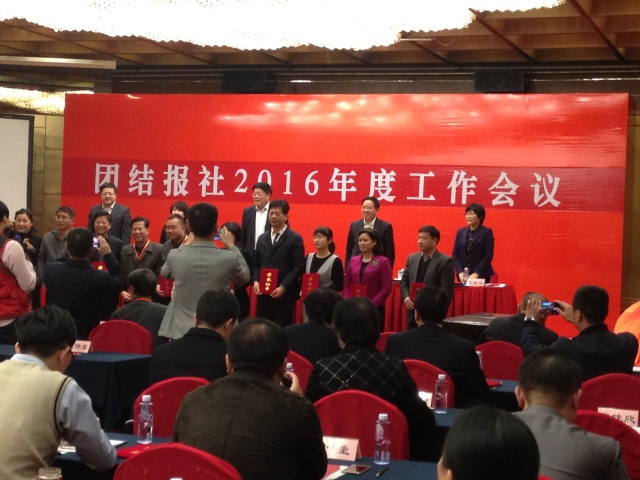 11月22日至23日,团结报社2016年度工作会议在京召开。民革中央原主席、团结报社顾问委员会名誉会长周铁农致贺信。民革中央副主席修福金,民革中央副主席、民革北京市委主委傅惠民出席会议并讲话。
